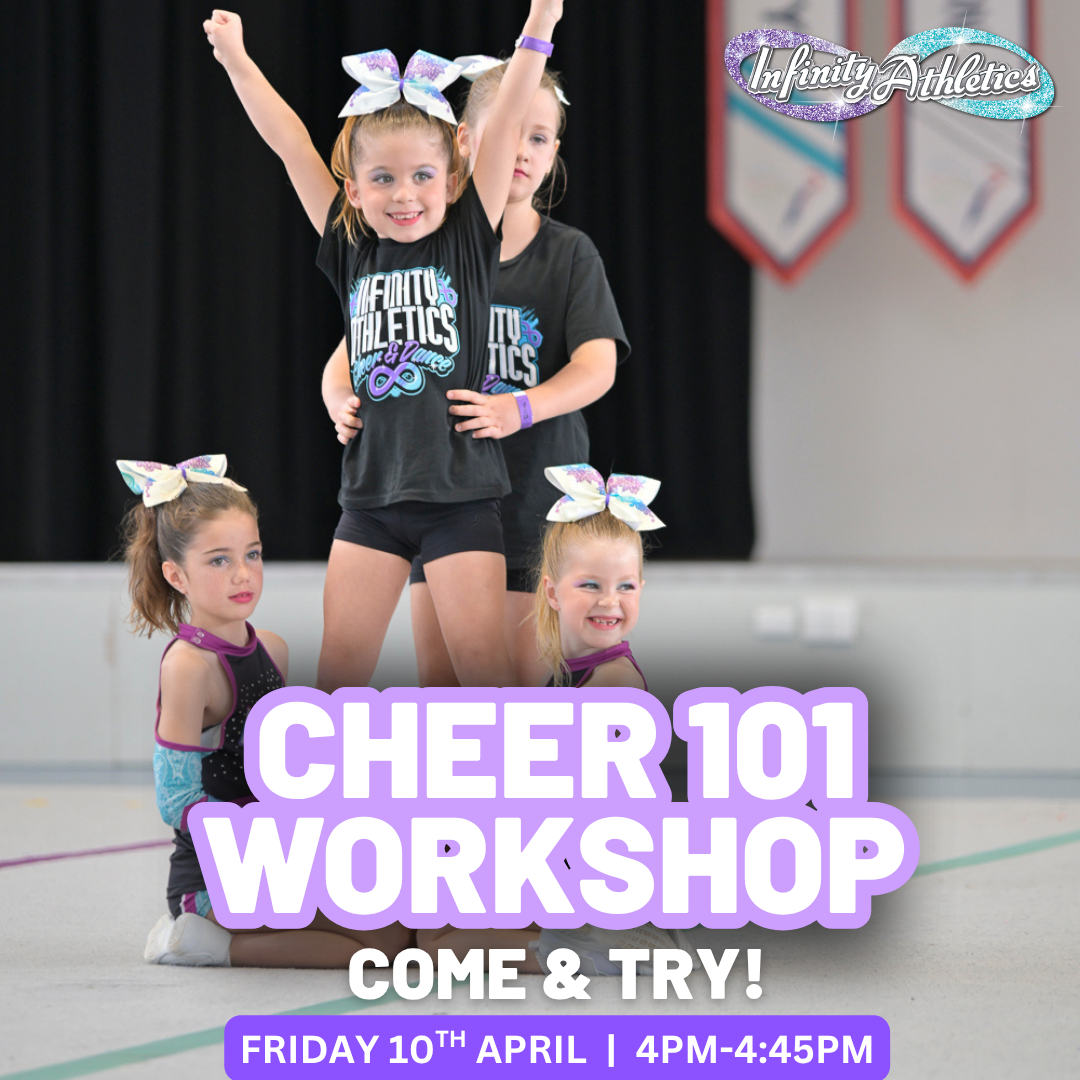 Suitable for those NEW to Infinity Athletics, this Workshop will explore all things Cheer! We will teach some foundational elements, learn some lifts and learn some tumbles.